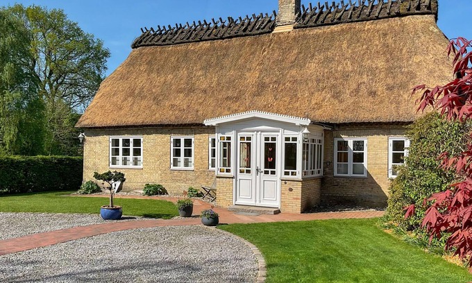 Experience an unforgettable vacation in a charming vacation home in Tolk in Schleswig-Holstein. This idyllic thatched-roof house offers you a beautiful combination of traditional flair and modern comfort. Relax in the cozy living room with its wooden beamed ceiling and enjoy sociable evenings by the wood-burning stove. Prepare delicious meals for your loved ones in the beautiful kitchen. Spend time in the inviting garden and get away from it all. Enjoy your meals on the terrace when the weather is nice. Let your children play carefree while you relax in the peaceful surroundings.