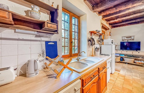 This charming holiday home invites you to enjoy a relaxing break in an idyllic location. Make yourself comfortable in the cosy ambience of rustic wooden beams and well-kept natural stone walls. Prepare regional dishes made from foie gras, truffles and porcini mushrooms in the spacious, fully equipped kitchen, light the fireplace and enjoy cosy evenings on the sofa with a wine from Bergerac.