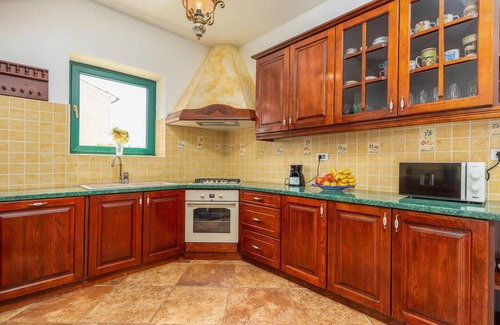 This vacation home is located in a small village near the city of Pula. On the first floor are living room, kitchen and two bedrooms with two bathrooms. On the second floor there are two bedrooms with two bathrooms. Interior and exterior stairs lead to the upper floor. From it there is a beautiful view of the surrounding area and partly the sea. It should be noted that there are also special bike paths nearby, so the lovers of extreme sports, can really get out here. Refreshment on hot days can be found in the large pool, your children can play happily with slide, seesaw and swing. The house is a good base for excursions. Visit Roman ruins in Pula, the bathing beaches in Sisan and its surroundings, as well as the picturesque places in the center of Istria, all located at a relatively short distance from Valtura. Finish the summer evenings comfortably on the terrace grilling with your friends or family.