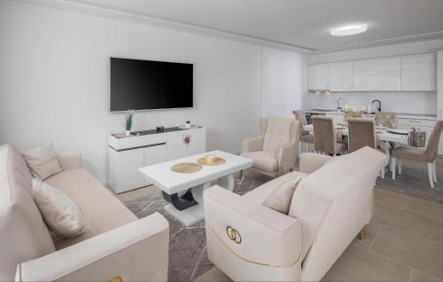 Nice Home In Vrvari With Wifi is located in Poreč, just 20 miles from Aquapark Istralandia and 24 miles from Cathedral St. Eufemia Rovinj. The property is around 2.4 miles from The Euphrasian Basilica, 2.4 miles from Poreč Main Square, and 3.1 miles from Aquacolors Water Park Poreč. The air-conditioned vacation home consists of 3 bedrooms, a living room, a fully equipped kitchen with a dishwasher and a coffee machine, and 3 bathrooms with a shower and a hair dryer. Featuring free private parking, this 5-star vacation home also features free Wifi. The property has an outdoor dining area. Guests can enjoy the outdoor swimming pool at the vacation home. Pula Airport is 32 miles from the property.