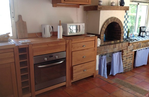 Beautiful nice house to live on a level with the charm of a wood and stone construction. Living room and kitchen open onto the terrace. Shaded by wisteria, a nice park with pine trees, weeping willows, oaks, etc..2 streams surround the house. Lots of greenery, calm and relaxing waves. Base Recreation: canoeing kayaking, swimming, tennis. All shops (intermarché) and services at 1km500