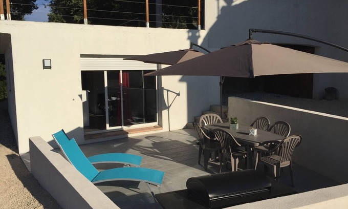 - Modern 110m2 air-conditioned house with garden and private heated pool.