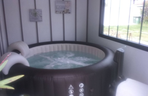 - Inflatable spa in a nice little room adjoining the terrace with workshop-style window overlooking the green grounds.