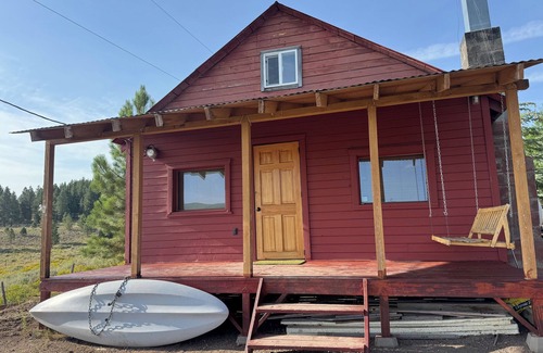 The cozy interior features a loft with a double bed, 2 twin beds in living room area, perfect for a small group of guests. Experience the magic of Panguitch Lake at our cute cabin. Please Note- there is no bathroom plumbing, there is a holding tank that runs in to do the dishes, (before it freezes for season 10/26/25) & the kitchen sink water drains out but there is an outhouse for your #1 & #2 needs and an outdoor shower that heats up in the sun.