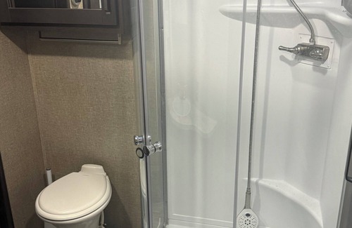 Located in Nampa, enjoy what this 2-bedroom recreational vehicle has to offer. With 1 queen bed and 1 bunk bed, guests can cozy up in this lovely space. Complete with heating and AC, this quaint RV also features a living room with a full bed for additional sleeping space. We think our place will help you experience everything Nampa has to offer.