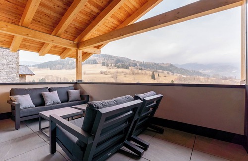This luxurious and spacious holiday home with sauna and hot tub is close to the ski slope of the Grebenzen ski area in Sankt Lambrecht. On the upper floor, near the living room and kitchen, there is a lovely covered balcony with fantastic unobstructed views. There is room for two cars under the carport, with extra storage space for skis or bicycles. The outdoor terrace is ideal for long summer evenings with unobstructed views of the setting sun