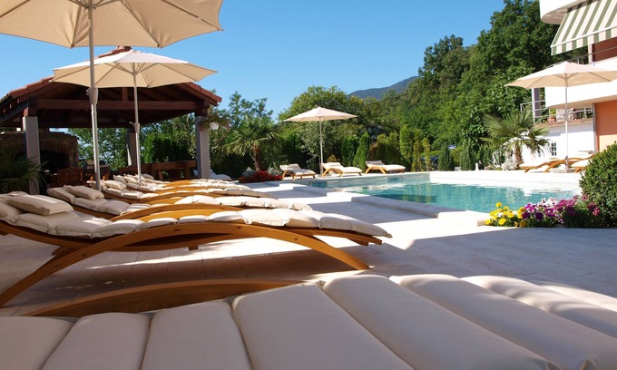 Place description: Opatija Ika: Opatija, sophisticated, well-known, historical, picturesque bathing resort, 12. 700 inhabitants in the center of the region directly by the sea, at the foot of Ucka (1400 m), 12 km south-west from Rijeka. In the resort: supermarket, shops, grocers, butchers, bakers, boutiques, post office, bank, restaurant, bar, disco, nightclub, casino, folklore evenings, concerts, evening entertainment, attractions. Indoor swimming pool, wellness center, fitness center, sauna, solarium, spa treatments, massage, thalassotherapy. In addition: pharmacy, doctor. Other opportunities for shopping and entertainment in 1- 12 km. Transport links: A1 Zagreb - Rijeka motorway. Continue on road 66 Rijeka - Opatija. Railway line Zagreb - Rijeka - Matulji (5 km). Train station Rijeka 12 km. Bus service. Port Rijeka at 12 km. For arrivals by plane: Rijeka Airport (RJK) 50 km, Zagreb (ZAG) 200 km, Pula (PUJ) 75 km.