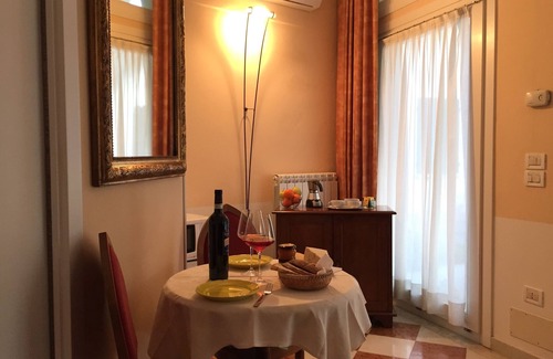 We offer our guests a small and indipendent "studio" (22 mq) complete with bed linen, bathroom and small corner (for the preparation of breakfast or quick meals, there are no cooking stoves but the microwave can be used to heat food), air conditioning and heating, TV, overlooking the park, private entrance and outdoor furniture.