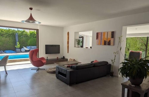 Enjoy a pleasant, air-conditioned family home with private pool. Spacious and bright, the double living room opens onto the pool.
