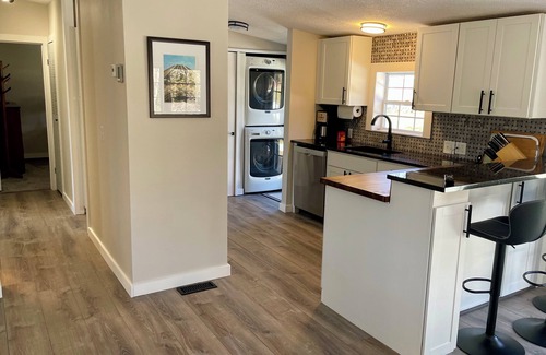 The kitchen is fully equipped and stocked with everything needed to prepare and enjoy your meals, either inside, or outside on the attached nicely furnished patio deck with gas Webber grill.