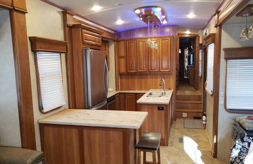 Our modern luxurious 5th wheel RV can be Over-Flow sleeping for our larger sister property Events or a Small quick Get Away for you and your someone special.