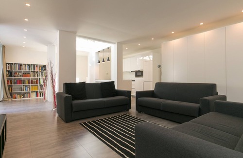 The space of 75 m2. accommodates up to 6 PEOPLE. It is a unique space, American style, divided into zones. The entrance is through a large window that can be opened completely and inside which there is a large blackout curtain for the night. BAR COUNTER, fully equipped kitchen, including DISHWASHER. The dining/work table can be opened for up to 6 guests and is illuminated from above by a large CRYSTAL PYRAMID whose doors can be opened electrically and equipped with a blackout curtain for the night. Large built-in wardrobe. Three very comfortable double sofa beds, 55 INCH flat-screen SMART TV with NETFLIX. Very original bathroom with glass walls, but opaque to ensure privacy, large crystal and mosaic shower. Floor lamp that works as a speaker connected with Wi-Fi, via Bluetooth, to your Smartphone, to listen to all the music you love. Two wall-mounted USB SOCKETS in the columns of the bar counter.