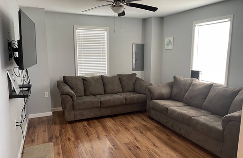 Nicole’s Nightly House Rental - is newly renovated, new paint, brand new furniture with memory foam mattresses, washer dryer, full kitchen, grill, WiFi, cable. Only 10 mins from both marinas. Come join the fun for a Fishing Experience of a lifetime!! Keep in mind this isn’t a party house perfect place to come back to relax and sleep after a long day of 🎣 Fishing. 6 full sizes bunks with twins on top. 1 bathroom.