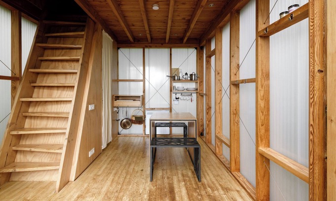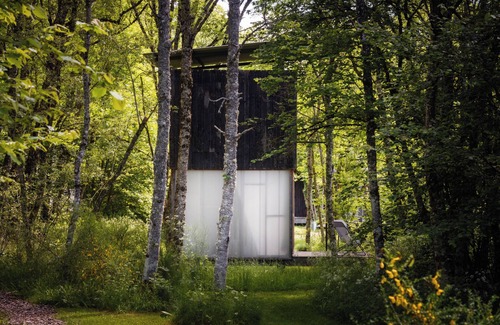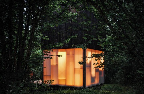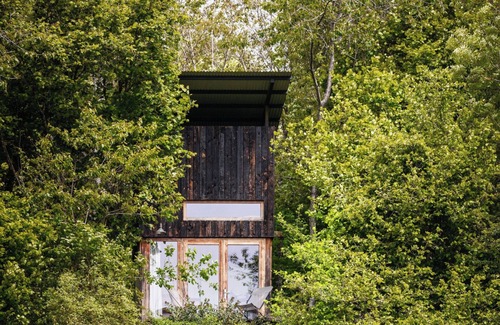 Architects welcome you to their cabins facing the volcanoes! The Latite cabins stand at the edge of a grove of cherry and hazel trees. They consist of two stacked spaces: on the ground floor, a bright area opens widely to the south onto the Chaîne des Puys, while upstairs there is a cozy "bedroom cocoon," ideal for napping and daydreaming. The cabin offers unique, comfortable spaces, perfect for a rejuvenating break. We have 4 Latite cabins. A cooler is provided in the accommodation. The cabin is also equipped with a water point and dry toilets. Bathrooms are located a few steps from the cabins. From September to June, each cabin has its own bathroom with a spacious walk-in shower and sink. In July and August, these spaces are shared with the three tents.