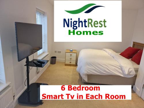 NightRest Homes 6 Bedroom House- Smart TV In each Room - Parking - Wifi -Milton Keynes is located in Milton Keynes.