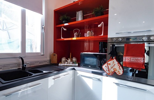 This 1-bedroom, 1-bathroom rental features a BBQ grill and air conditioning. Bathroom amenities include a hair dryer, a bidet, and towels. The kitchen is equipped with an oven, a stovetop, and a refrigerator, as well as a coffee maker, an electric kettle, and a microwave. And because there's access to laundry facilities, you can go a bit lighter on your packing. Other amenities include bed sheets, an ironing board, and heating.