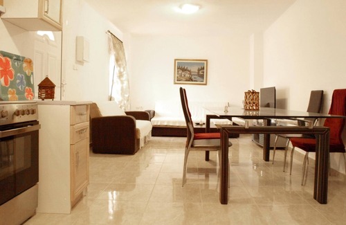 The apartment is located on the ground floor of the building, providing easy access for guests who prefer not to use stairs. It has one bedroom with a comfortable bed that can accommodate up to 2 guests and a sofa bed in the living room to accommodate 2 guests more. The kitchen is fully equipped with all the necessary appliances and utensils for cooking meals, such as a stove, oven, refrigerator and dishes. This allows guests to save money by cooking their own meals instead of eating out. The apartment also has a washing machine, which will be useful for guests who need to do laundry during their stay. Other amenities that it is included in the apartment are air conditioning, a TV, and a bathroom with a bathtub. Overall, this type of apartment is ideal for small families or groups of friends who want to enjoy a comfortable stay in a self-catering accommodation with easy access to the surrounding area.