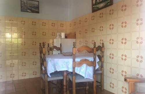 To your left you will find the family bathroom with shower and next to it the kitchen with all the necessities for preparing food, in the same space there is also a dining table so the family or friends can all eat together.