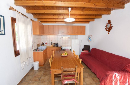 Nikolas House located in Afionas is a traditional house that offers accommodation up to four people. Nikolas house covers a surface of 85sq.m and figures two bedrooms, one with double bed and the other with single beds. The whole house is on the ground floor and also has a bathroom and a spacious open plan kitchen with dining area and living room. Around the home there are large verandas with sitting area and nice blooming garden with flowers and trees. The holiday hire offers free Wi-Fi access , air-conditioning in the bedrooms, parking space, fully equipped kitchen , portable barbecue and washing machine. Nikolas house is in a quiet area with sea view from one side and view to the mountain from the other. Within a few minutes customers can find restaurants, cafes ,super market.