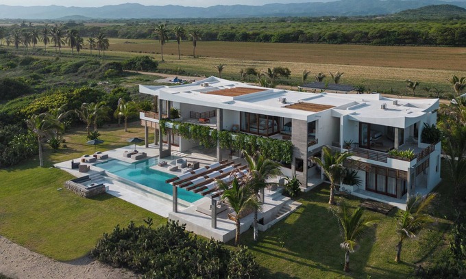 Set directly on Playa Plataforma beach on Oaxaca's Pacific coast beneath lush green mountains, this newly built, staffed private villa offers a secluded escape with no neighbors, 3 pools, daily housekeeping, daily cook, and daily bartender. Indulge in surfing or horseback riding directly in front of the villa. Complete with 5 spacious en-suite rooms, the villa was designed by a famed Ralph Lauren model and is the most centrally located villa in the Puerto Escondido region.