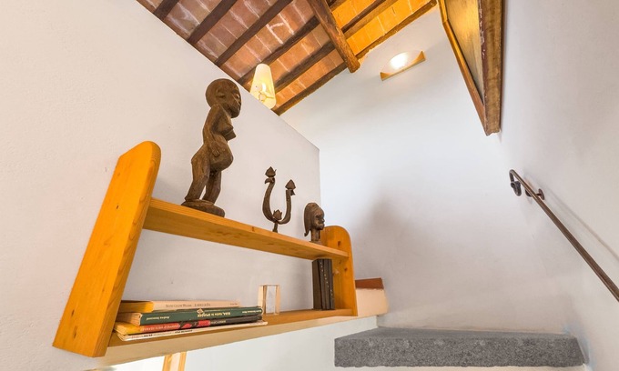 Upstairs, a charming staircase leads to the spacious double bedroom, a welcoming and romantic space where you can wake up to an unforgettable panoramic view.