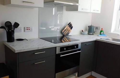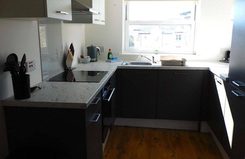 This freshly decorated apartment has a lovely modern feel with a spacious open living/ dining area including a dining table for 4. There is also a fully equipped kitchen. The 2 bedrooms each have double beds. As well as a flat-screen Smart TV in the living area, there is also a Smart TV in each bedroom.