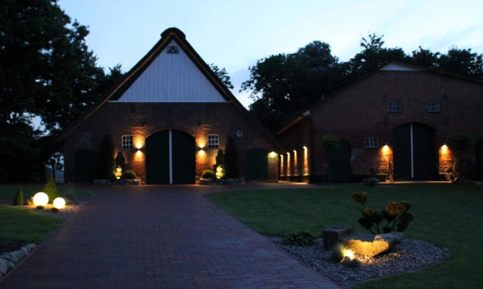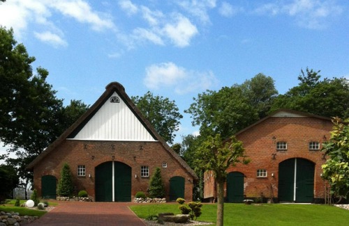 We offer you a comfortable holiday apartment for 6 people on the Elbe island of Krautsand. You live idyllically and quietly on a former farm that is only a few minutes from the sandy beach of the Elbe. The courtyard consists of a resident in a thatched residential building, a guest house and old stables. Garden furniture and grill are available on our large guest migrant meadow, surrounded by old trees. Our house was awarded the highest rating by the Tourismus Association of the Stade district as "particularly recommended".