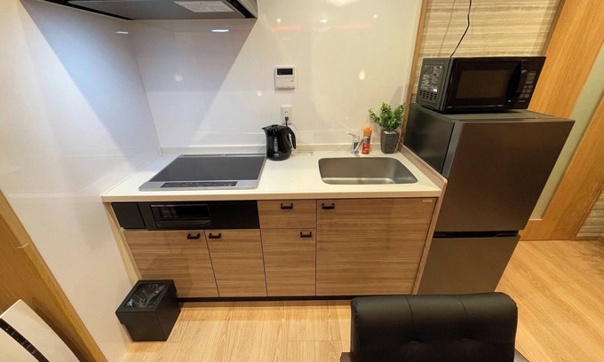A Japanese modern style private lodging Oyado Nene has opened in the Haneda area of Tokyo It is just 15 seconds walk from the ticket gate of Anamori Inari Station on the Keikyu Line It is 10 minutes to Haneda Airport and 23 minutes to Shinagawa Station on the Keikyu Line so it is easy to get to Tokyo and Haneda and Narita Airports A 10minute taxi ride from Haneda Airport costs around 1000 yen There are two spacious rooms over 40 m2 so families and girls parties are also welcome There / 3F301 is a spacious 48 apartment with a maximum capacity of 6 people and includes a living room kitchen toilet washbasin 1418 size unit bath and washbasin washing machine The living room has a sofa and table The kitchen is equipped with an induction stove microwave refrigerator and kettle There are two double beds A single extra bed is also available