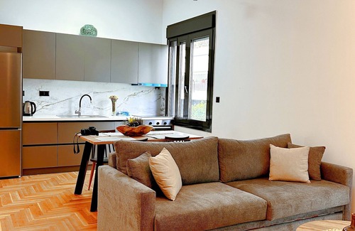 Spacious 2-bedroom apartment at THEO Apartments in Athens Center. Fully equipped, modern design, fast Wi-Fi, ideal for families or groups. Near metro, easy access to city sights.