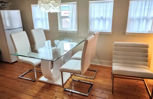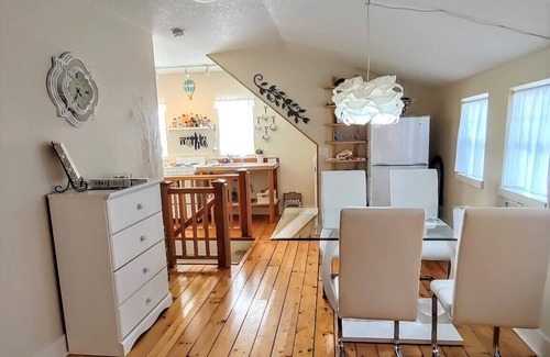 "A Little Bit of Heaven" is a bright, open, charming 540 sq ft studio apartment suite with a PRIVATE ENTRANCE to an entire upstairs floor and no one else lives downstairs. The bottom floor has a laundry room and garage storage. Sleeps four in 1 queen & 1 double bed. A tri-fold memory foam floor mattress that comfortably sleeps one is in the closet, as well as a safe and comfy inflatable child-size bed for up to about age 8.