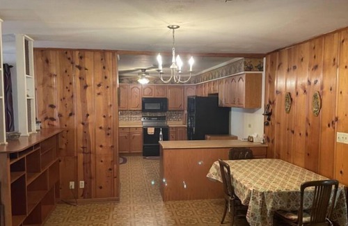 No TV, internet, washer or dryer but plenty of space with this 3/2 home with a den and living room. Perfect for 1-2 families to stay under one roof. Two of the the 3 beds are air mattress. Front and back porch with views of the surrounding hills, perfect for enjoying your coffee in the morning. This house is about to be remodeled so only the bare necessities are in place but a great space for those who are mainly looking for a nice place to stay.