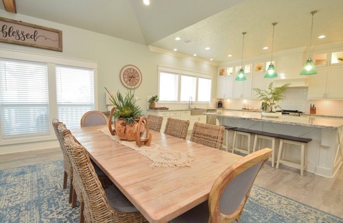 Welcome to No Regrets ~ Luxury at the Beach ~ pool & spa ~ 6 bedrooms & 5 full bathrooms ~, an exquisite property in Port Bolivar, Texas that serves as the ideal setting for your dream wedding. This stunning home boasts 3,500 sq ft of luxurious accommodations, including three king suites with ensuite baths, ensuring comfort and privacy for you and your wedding party. With beautiful outdoor spaces featuring a cascading pool and spa, you can create unforgettable memories and picturesque moments as you celebrate your love with family and friends.