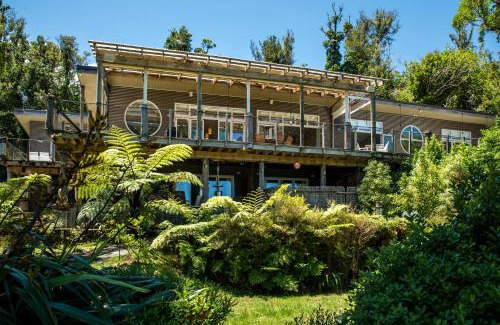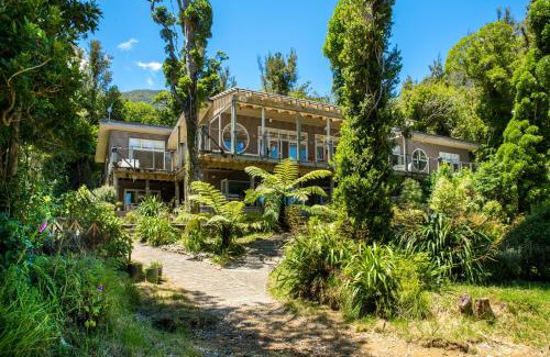Providing a garden, No Road Inn in Endeavour Inlet, Marlborough Sounds offers accommodations in Picton. This beachfront property offers access to a balcony and free Wifi. Offering a terrace and sea views, the spacious vacation home includes 5 bedrooms, 2 living rooms, flat-screen TV, an equipped kitchen, and 7 bathrooms with a bath and a shower. Towels and bed linen are offered in the vacation home. The property has an outdoor dining area. Picton Airdrome Airport is 56 miles from the property.