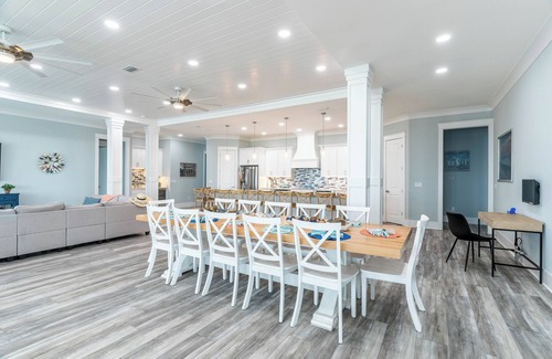 - Modern Amenities: The house features a fully equipped kitchen with double refrigerators and freezers, commercial ice maker, and ample seating in the great room, accommodating up to 24 guests.