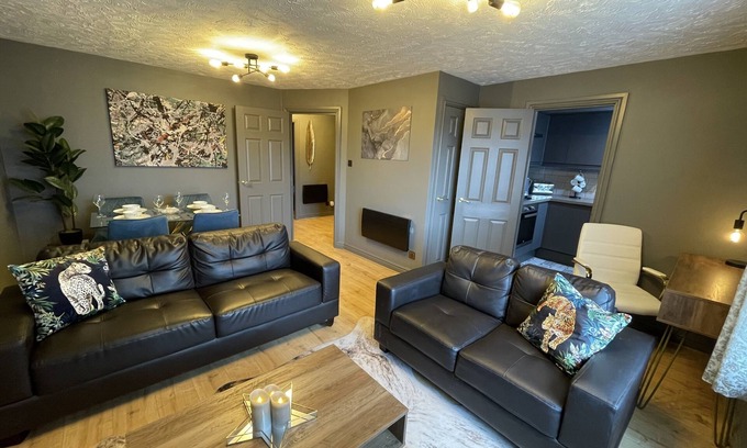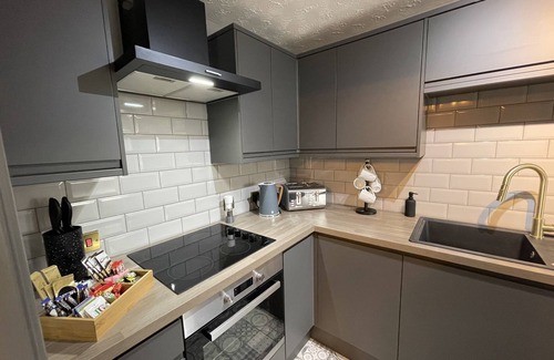 This recently refurbished boutique apartment is perfect for business travellers and tourists alike. With easy transport links to all major routes, via train or car, this property is suited to everyone's needs. There are 2 comfortable bedrooms, one double and one single, both with luxury memory foam mattresses and plenty of pillows. The décor is modern and fresh with many contemporary touches from the statement art on the walls, to the eclectic mix of furnishings and ornaments. The kitchen and bathroom are brand new, sleek and full of everything you could need for a comfortable and enjoyable stay, including a thoughtful welcome pack. The apartment is warm and secure and provides super fast fibre broadband and a Virgin TV package.