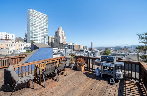 • Rooftop deck with BBQ and panoramic views of the Golden Gate Bridge and city skyline.