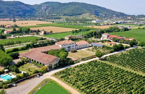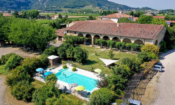 First floor two bedroom apartment, with open plan living, dining and kitchen area. One double/twin bedroom. One triple bedroom. One bathroom with shower. The apartment is very well furnished with locally made solid wood furniture and kitchen. The kitchen has a solid granite work surface. Classic larch wood floor. 400 year old exposed solid stone walls. original beamed ceilings. The north facing bedroom has a view of the 5000 square metre Villa Palazzo Rosso courtyard garden. The south facing bedroom has a view over the 300 square metre, 10 metre high beamed 'Portico' barn which is for guest use. The apartment is both heated and air conditioned. The apartment is part of a restored 400+ year-old wing of Palazzo Rosso, shared facilities include a pool (seasonal), a jacuzzi, a sauna, a small gym, a large playroom with a pool table, table football, a ping pong table, and kitchen; there are bikes both normal and electric (on request), a barbeque and an animal farm. From Palazzo Rosso you are well placed to visit the whole of the Veneto region, we are an hour's drive from Venice (you can also take the train from a nearby town), 40 mins from Verona 20 minutes away from Vicenza and Padua, an hour away from Lake Garda and the dolomites, and close to many other historic towns and cities such as Bassano del Grappa, Abano Terme, Treviso, Valdobbiadene, Marostica, Montagnana, Arquá Petrarca, Possagno and many more.