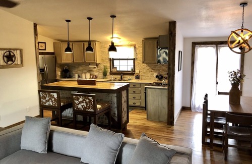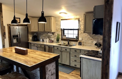 Experience Luxury in the Wilderness area of SE Oklahoma! Guests to this area are often Hunters, Hikers, Bikers, Talimena Scenic Drivers, Fisherman and Horseback Riders. New in December 2020! Surrounded by timber lands and the Oklahoma Wildlife Management Area, it’s a very quiet location. The cabin is a modern 3 bedroom, 2 bath with ample outdoor living space in massive front and back porches. It has a fully stocked kitchen with good cutlery, dishware, cooking utensils, spices etc... High end beds, wood floors, tiled showers and backsplashes, Smart TV, Netflix, WiFi, a fully stocked kitchen, propane grill, outdoor furniture and a fire ring.