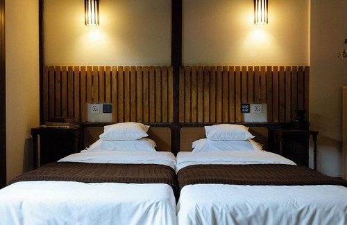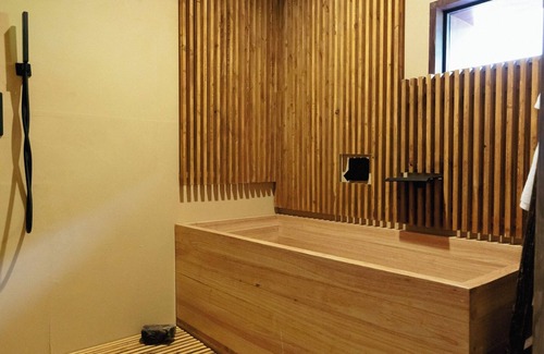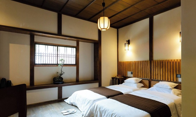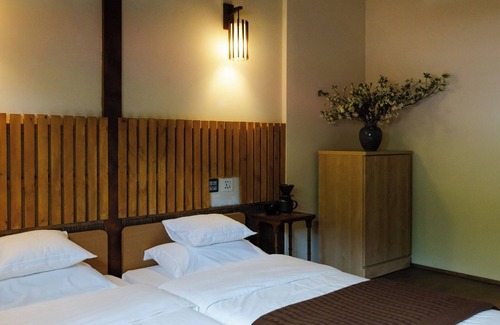 As you step inside the building you will find a modern Japanese space that matches modern life while making the most of the appearance of old Japanese houses such as thick wooden pillars beams and fittings / 2 single beds