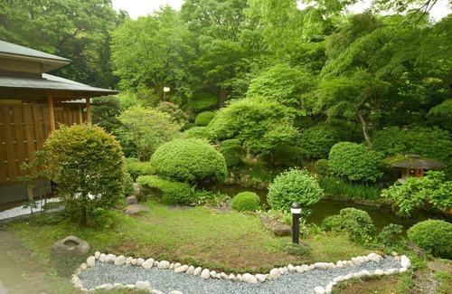 A private inn built in a Japanesestyle building surrounded by a Japanese garden