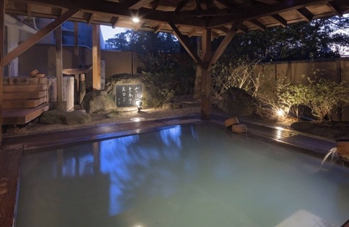 The acidic springs are directly from the source The spacious baths are equipped with saunas and an openair bath made entirely of cypress wood All of the baths are directly from the source