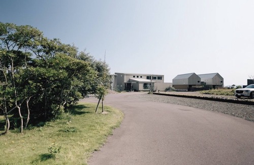With a compact bathroom and closet a bedroom with earthen walls and a low ceiling reminiscent of a cave and a door on the other side leading to the deck you can enjoy the feeling of the Sea of Japan
