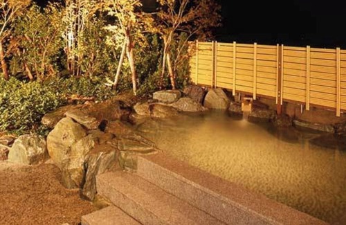 At the Japanesestyle garden openair baths Gennoyu and Hiranoyu on the top floor