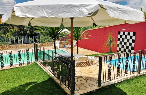 Cozy farm 60km from São Paulo. Family atmosphere, quiet in a rural area 5km from the shopping center. Great for those who want to relax, have a barbecue with family or friends, enjoy a pool and escape the rush of the big city. The farm with equipped kitchen, 3 bathrooms, great room, swimming pool for adults and children, backyard, garage for up to 4 cars, mini soccer field, and mini vegetable garden.