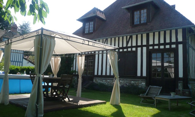 A stone's throw from Honfleur, a few minutes from Deauville and Pont l’Evêque, semi-detached rental with the owner located in an authentic Normandy mansion decorated with an old Calvados press. Easy to access, a pleasant, friendly and friendly setting awaits you. You will have a relaxation room directly overlooking the garden where, in the morning, you can quietly enjoy your breakfast. A plunging view of the surrounding countryside invites you to rest with a perspective planted with fruit trees, apple and cherry trees ...