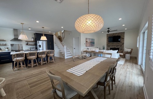 Located just four houses away from the beach, newly built 5-bedroom, 4 1/2-bathroom beachside getaway with a private pool! This beachside retreat has the perfect blend of modern luxury and coastal charm with 5 bedrooms (3 with private balconies), a wrap around porch with Adirondack chairs and an outdoor shower. The large, open floor plan includes a gas fireplace, oversized kitchen island, and a large outdoor table/chairs, perfect for preparing meals and hosting guests.