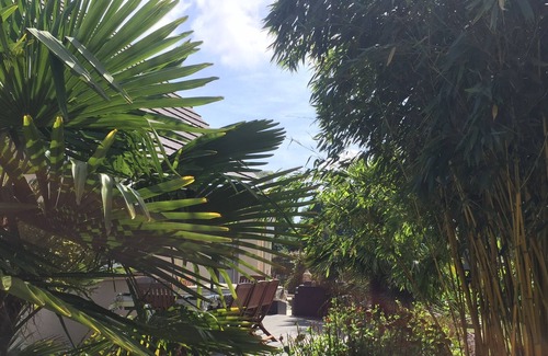 forget fatigue and stress in an exotic setting with: the jacuzzi specially adapted for back problems, a superb heated swimming pool.