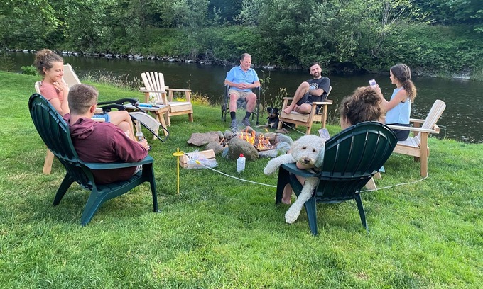 Rent all five Moon River Suites for a private family or friends reunion or event. Max capacity on the property is 35 guests. Enjoy a modern getaway in a classic Pacific Northwest setting along the river next to a park. You will have the entire Moon River building including the 1/2 acre natural area out back. From May to mid October, venue includes farm tables and cushioned chairs under covered gazebos for outdoor dining and gathering. Located in downtown North Bend, out front is a great view of Mt Si and downtown is a few steps away. Out back, enter another world with 5 private hot tubs, gazebos, fire pit, super-sized barbecue grill, picnic tables, outdoor seating, and a small beach for access to play in the river. We have lots of entertainment: 3 Smart TVs and XBox One with deluxe game package in each suite, a cornhole game, fairy garden with treasure hunt. Follow a beautiful wooded walk downstream to a secret swimming hole and Snoqualmie Valley Trail.The following describes each of the 5 townhomes: The first floor has a completely new modern kitchen, dining and living room with a half bath. A private deck with spa and BBQ are right out the back door. The washer and dryer are at the top of the stairs. Upstairs are two bedrooms and a full bath. The master bedroom in back has a king bed, and a private deck with a beautiful river view. The stylish front bedroom has a queen bed. Each bedroom and the living room has a smart TV. Outside in back, there is 1/2 acre of natural area and lawn tiering down to the river. It's a perfect place to relax, work from home, sit around the campfire and cook smores, play lawn games, or relax in a chair on the riverbank or play in the river. The prime river play season is generally early to mid July through mid September depending on springtime weather and runoff from the snowpack.
