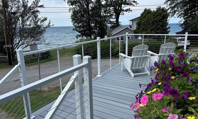 This brilliant, pet-friendly home is located on the shores of Lake Erie in scenic wine country. Walk out your front door and the Lake is within 50 feet for your enjoyment. From your newly constructed wrap-around deck, enjoy a morning coffee or an evening sunset.