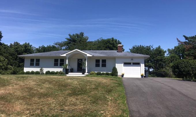 Our lovely home is located in the coveted hamlet of Riverhead on the North Fork of Long Island. This beach house retreat is on a secluded acre backing a lavender farm. The house is totally renovated and has 3 bedrooms/2 full baths. Access to Reeves Park Beach which is 2 minutes from our home perfect for families who want to enjoy a beach vacation and the surrounding North Fork activities - farms, vineyards, hiking trails, parks, golf, amazing restaurants, Tanger Outlets, Splish Splash, Long Island Aquarium, the Hamptons and Greenport Village. Amenities include washer/dryer - fire pit - central a/c - BBQ - WI-FI - outdoor dining and seating areas, indoor dining seating for up to 6, all new appliances and so much more ! This is truly a summertime oasis and has afforded our family the very best of summers - we hope now to share those experiences with you - the North Fork-is truly the very best get away imaginable !
